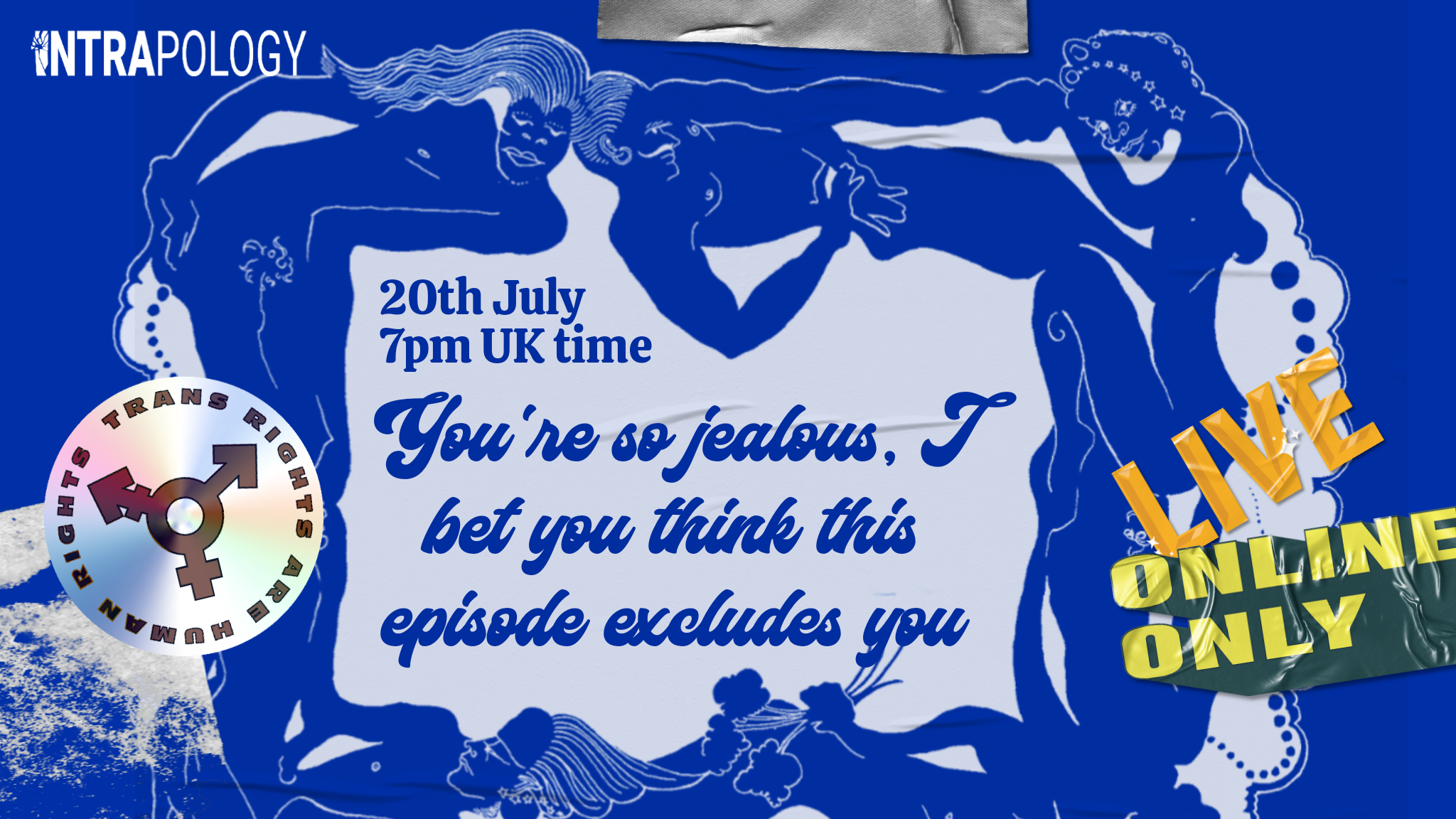‘You're So Jealous, I Bet You Think This Episode Excludes You’ is a live-digital hybrid, interactive sci-fi comedy about denialism and idealism, neurodiversity and neuroqueerness, and the pain of living in a world that works against your survival. It is the fourth story for Intrapology, a series of interactive performances that will explore how people make worlds together, through the allegory of the Transdimensional Research Institute.